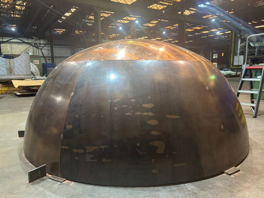At Antonius, projects range from massive industrial vessel heads to refined copper components for the beverage industry. A recent example illustrates this versatility: a copper hemisphere with an internal diameter of 2,716 mm and a wall thickness of 4 mm, manufactured from SB 152 C1220 H02 copper alloy.